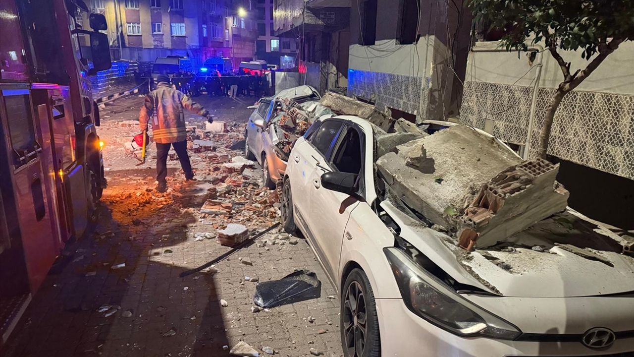 İSTANBUL (AA) - Zeytinburnu'nda kentsel dönüşüm kapsamında boşaltılan binanın çatısından düşen beton parçaları, park halindeki araçlara zarar verdi.